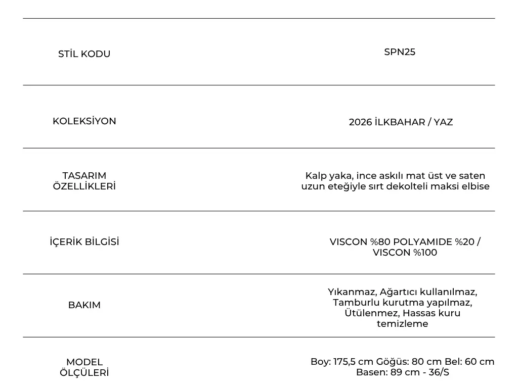 Zarafetinizi özel davetlerde bir adım öteye taşımak için siyah stiletto ve parlak bir clutch ile kusursuz bir uyum yakalayabilir; saçlarınızı geriye doğru zarifçe toplayarak sırt dekoltenizi ön plana çıkarabilir ve uzun, sallantılı kristal küpelerle görünümünüze göz alıcı bir ışıltı katabilirsiniz. Bu şık dokunuşlar, sade ama etkileyici bir stil oluşturarak gecenin en zarif görünümlerinden biri olmanızı sağlar.